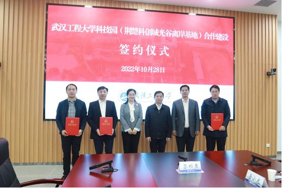 10月28日上午,武漢工程大學(xué)科技園(荊楚科創(chuàng)城光谷離岸基地)項(xiàng)目合作簽約儀式在武漢工程大學(xué)流芳校區(qū)舉行。武漢工程大學(xué)黨委書記程幼金,黨委副書記、校長王存文,武漢工大資產(chǎn)經(jīng)營管理有限公司總經(jīng)理葉健,市委常委、市委宣傳部部長徐莉,荊門城控集團(tuán)黨委副書記、總經(jīng)理程雄等參加簽約儀式。