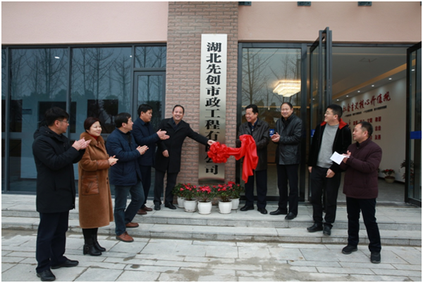 漳河新區(qū)黨委書記陳保寧,市城控集團黨委書記、董事長杜佐鵬,市城控集團黨委副書記、總經(jīng)理,荊門城建集團黨委書記、董事長豐金亮,荊門城建集團總經(jīng)理葉東,紀委書記劉濤,副總經(jīng)理肖玉蘭及漳河新區(qū)管委會副主任傅強,湖北先創(chuàng)市政工程有限公司董事長李洪波、總經(jīng)理張新鋒共同為新公司揭牌。