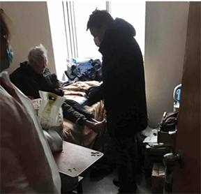 二是全力保障生活物資。疫情無情人有情,服務群眾無止境。針對小區(qū)物資供應不足、排隊購物時間長、人員集聚風險高等問題,積極與街道和社區(qū)協(xié)調,采取增派服務人手、增加物資配送批量、組織分區(qū)封閉配送、送“貨”送藥上門等便民利民措施,打通“最后一百米”梗阻,有序有力保障小區(qū)承租戶的基本生活需求。2月6日,風雪交加,時值小區(qū)封閉管理的第二天,房管員在電話巡訪中得知金水灣公租房小區(qū)承租戶孔大爺的求助,因隔離在家、腿腳不便,沒有購買生活物資,家中已停氣斷炊。保障房公司當即調派王圣飛、宋光琴、王臣華3名員工前往幫助其采購物資上門,并聯(lián)系開通燃氣。老人對“雪中送炭”之舉感激萬分。