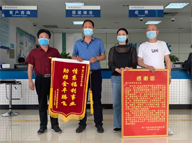 5月15日上午,荊門市金豐新材料有限公司總經(jīng)理袁家群和東寶區(qū)工商聯(lián)相關(guān)負責(zé)人來到市城控集團所屬市供水總公司,送上感謝信和寫有“情系福利事業(yè) 助推金豐騰飛”的鮮艷錦旗,以感謝市供水總公司想企業(yè)之所想、急企業(yè)之所急,用實際行動踐行初心使命,助推企業(yè)復(fù)工復(fù)產(chǎn)。