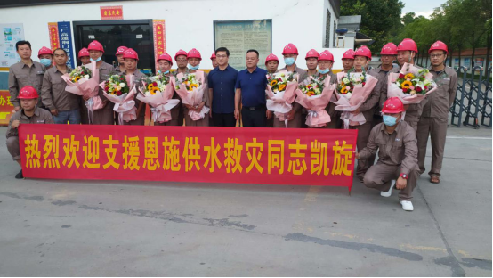 7月27日,市城控集團(tuán)所屬市供水總公司逆行出征恩施市的應(yīng)急供水救援隊(duì)全部平安凱旋。市供水總公司黨委委員、副總經(jīng)理曾波帶領(lǐng)相關(guān)負(fù)責(zé)人趕往荊門北高速公路出入口迎接,獻(xiàn)上鮮花感謝8名隊(duì)員勇往直前,不畏艱險(xiǎn),圓滿完成了這次艱巨的供水救援任務(wù)。