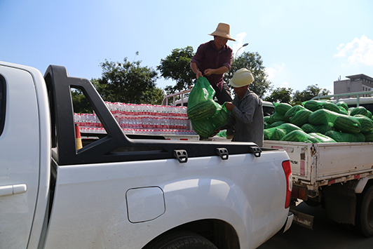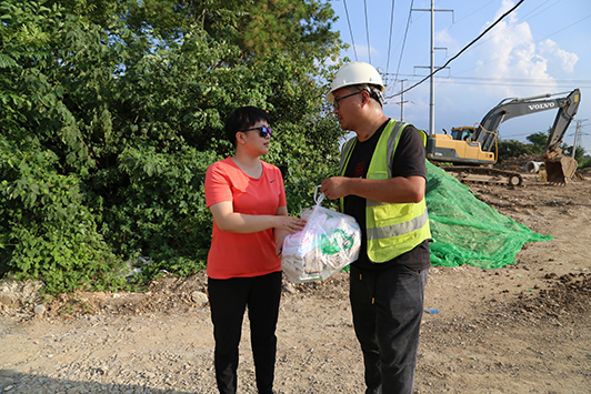 天宇市政公司公司紀檢委員、工會主席楊敏為施工人員送防暑降溫物資及藥品