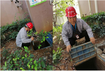 維修人員現場檢修破損水表箱